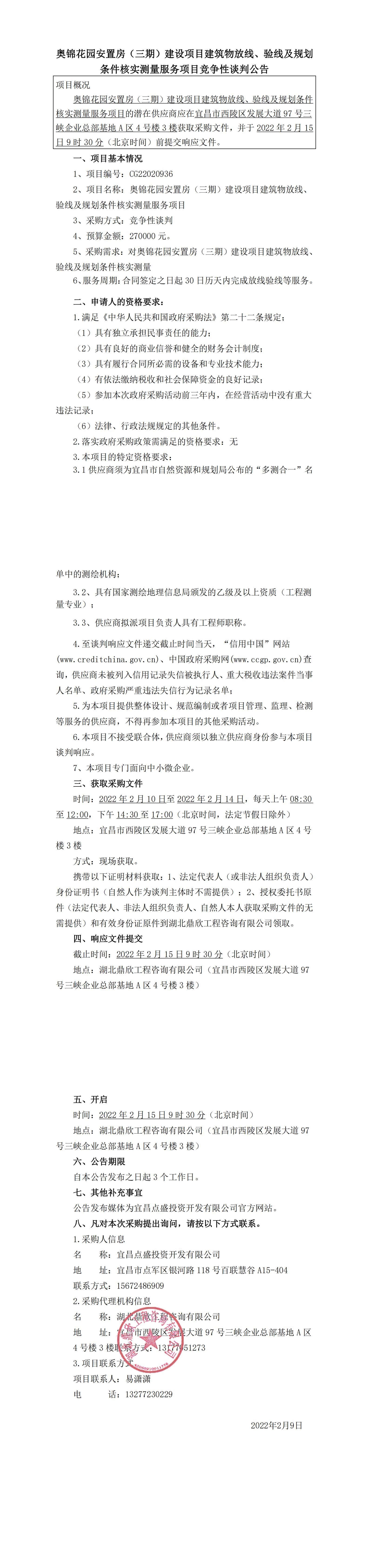 奧錦花園安置房(三期)建設(shè)項(xiàng)目建筑物放線、驗(yàn)線及規(guī)劃條件核實(shí)測(cè)量服務(wù)項(xiàng)目競(jìng)爭(zhēng)性談判公告