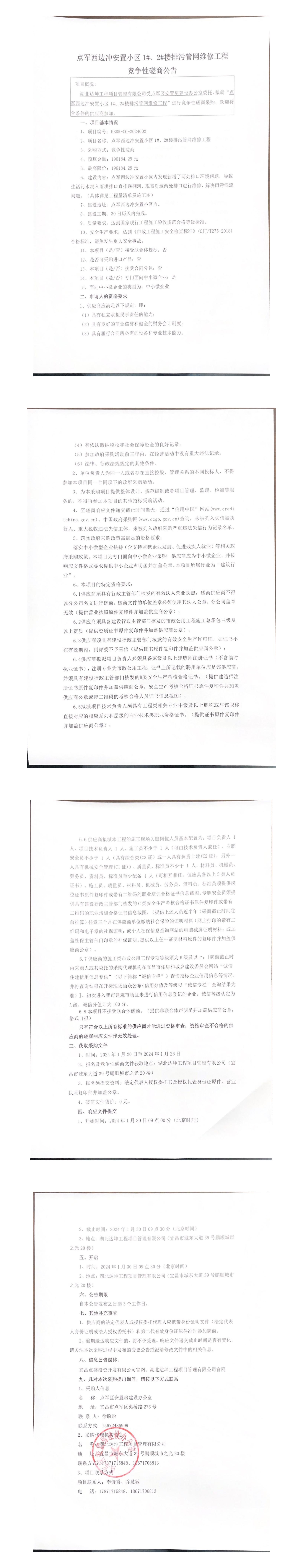 點軍西邊沖安置小區(qū)1#、2#樓排污管網(wǎng)維修工程競爭性磋商公告