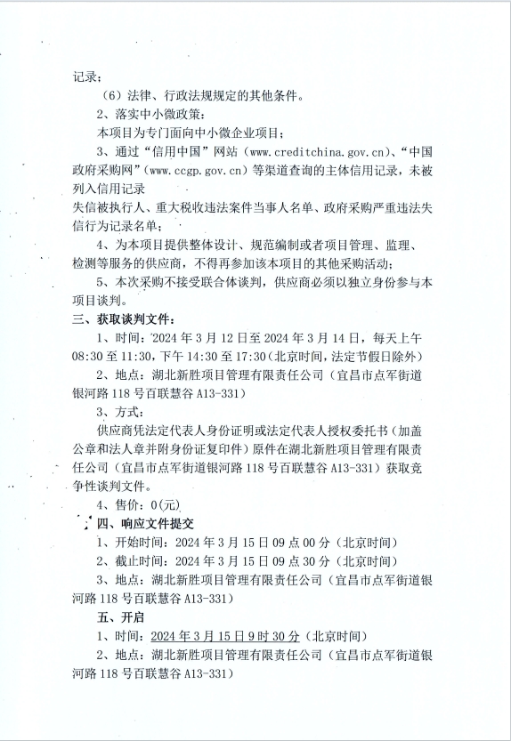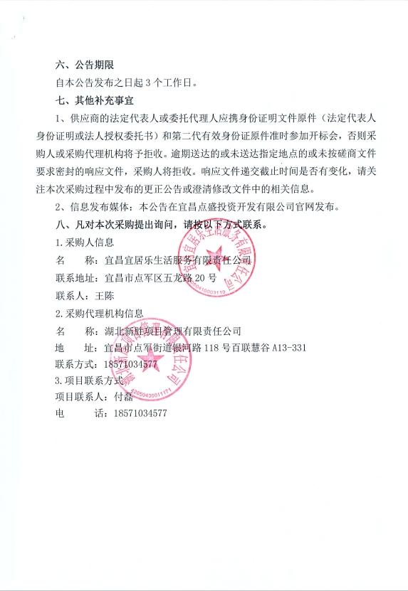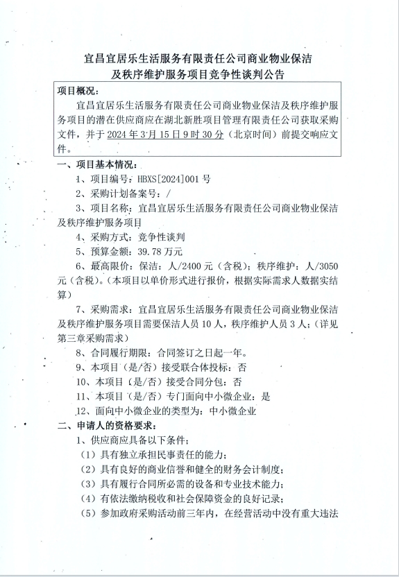 宜昌宜居樂生活服務(wù)有限責任公司商業(yè)物業(yè)保潔及秩序維護服務(wù)項目競爭性談判公告