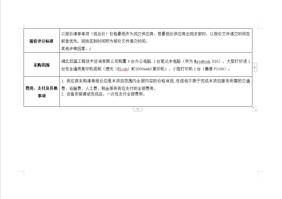 欣盛公司辦公大件物品采購項目詢價公告