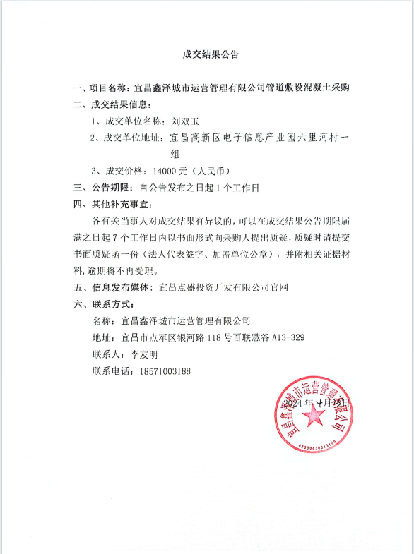 管道敷設(shè)混凝土采購(gòu)項(xiàng)目成交公告