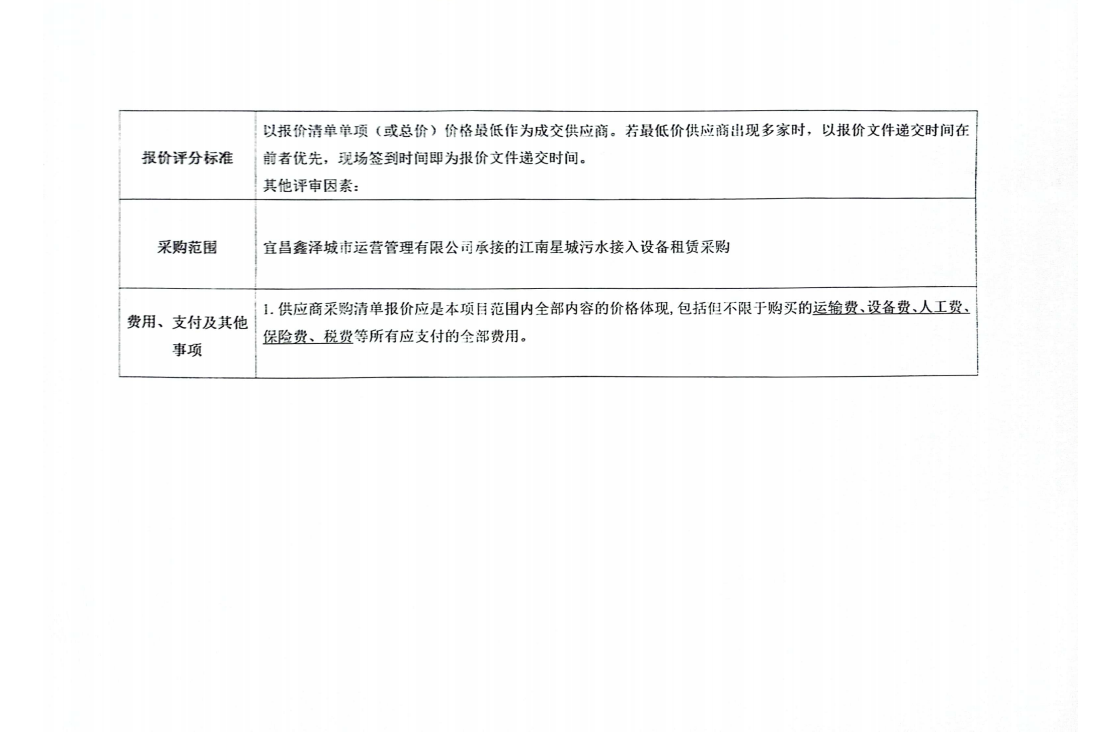 江南星城污水接入設備租賃采購詢價公告