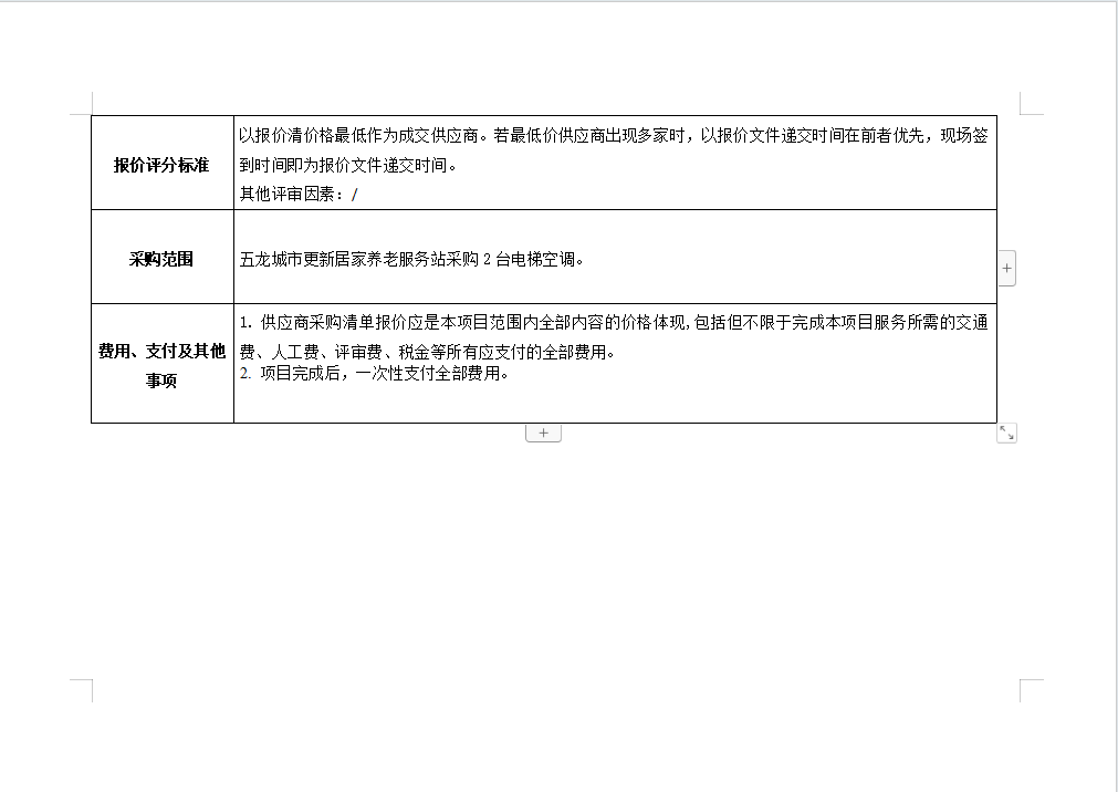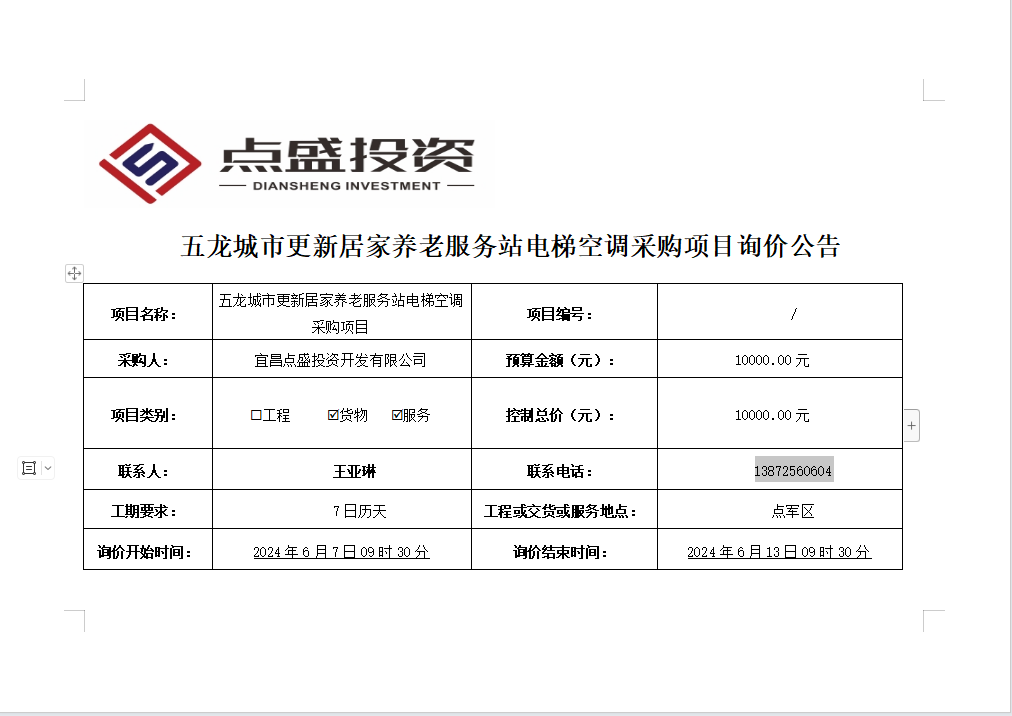 五龍城市更新居家養(yǎng)老服務站電梯空調(diào)采購項目詢價公告