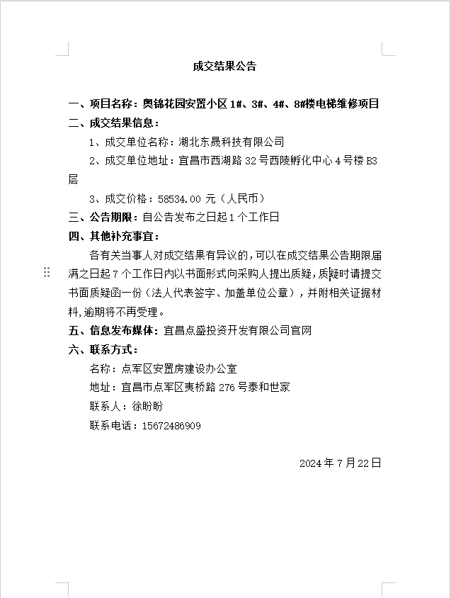 奧錦花園安置小區(qū)1#、3#、4#、8#樓電梯維修項(xiàng)目成交公告