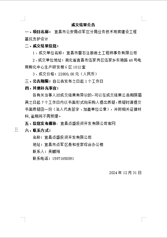 宜昌市公安局點軍區(qū)分局業(yè)務(wù)技術(shù)用房建設(shè)工程基坑支護設(shè)計成交公告